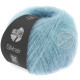 Моточек Lana Grossa Silkhair весит 25 грамм и имеет намотку 210 метров пряжи. Пряжа тонкая, выбирайте для воздушного вязания из Soffio спицы от №4,5 до №54,0.