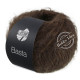 Моточек Лана Гросса Баста весит 50 грамм и имеет намотку 100 метров пряжи. Пряжа представляет собой нить слабо скрученного мериноса в комбинации с длинным ворсом из полиамида. Пряжа толстая, выбирайте для вязания из Баста Лана Гросса спицы №5,0-6,0 для воздушного полотна.